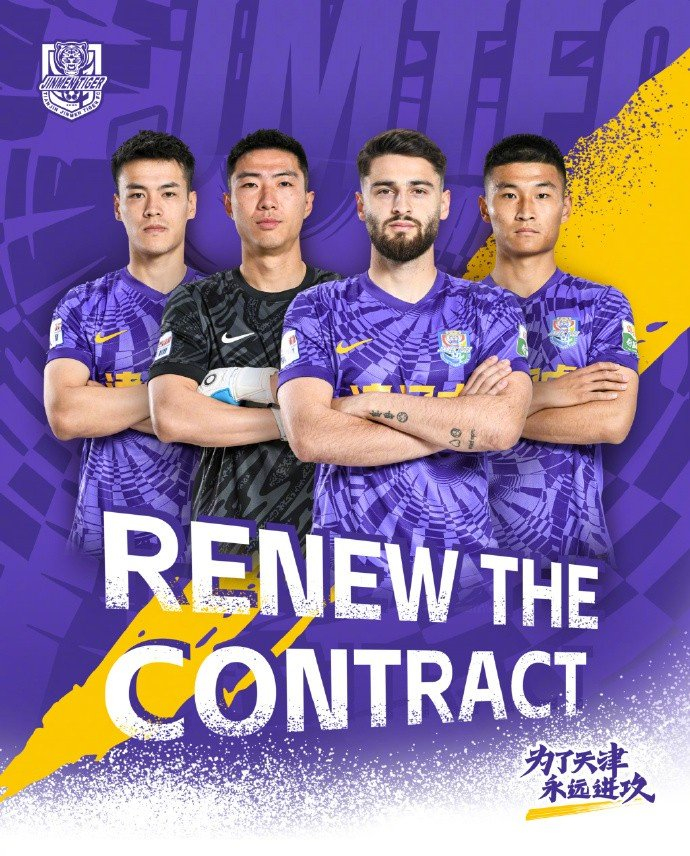 双向奔赴,共赴未来!我们对四名续约球员送上祝贺与期待,相信他们能够延续自己的良好状态,为津门虎队赢得更多的胜利与荣誉!